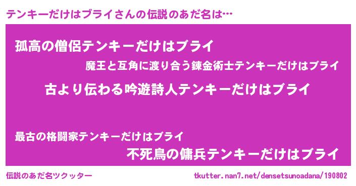 | 意味不明あだ名 | 『永久保存テンキーだけはブライ』 |