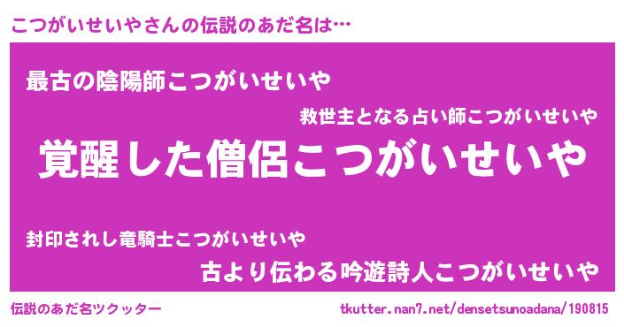 | 意味不明あだ名 | 『とにかく怪しいこつがいせいや』 |