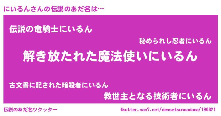 | ヒーロー風カッコイイあだ名 | 『魔戒騎士ニイ』『超時空戦士ニイルン』 |