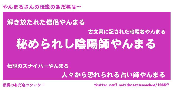 | 意味不明あだ名 | 『やんまるフォーエバー』 |