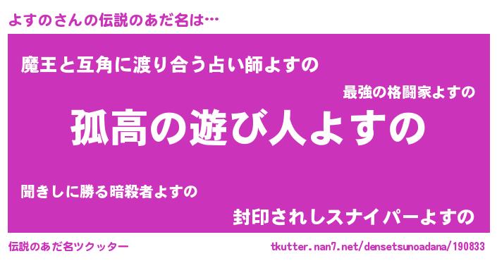 | ヒーロー風カッコイイあだ名 | 『仮面ヨスダー』『サイバー戦士ヨスノ』 |