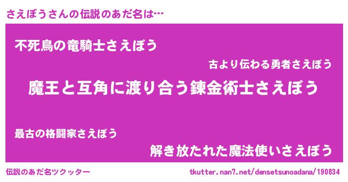 | ヒーロー風カッコイイあだ名 | 『サイバー戦士サエボウ』『仮面サエダー』 |