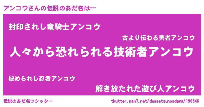 | ピコ太郎風あだ名 | 『アア太郎』『アコ五郎』『アン太郎』 |
