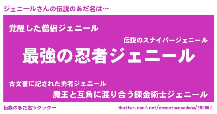 | 意味不明あだ名 | 『ジェニールフォーエバー』 |