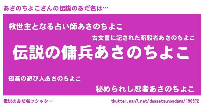 | 胡散臭い通販商品みたいなあだ名 | 『必ず成功する水晶球…その名も「あさのちよこ」』 |