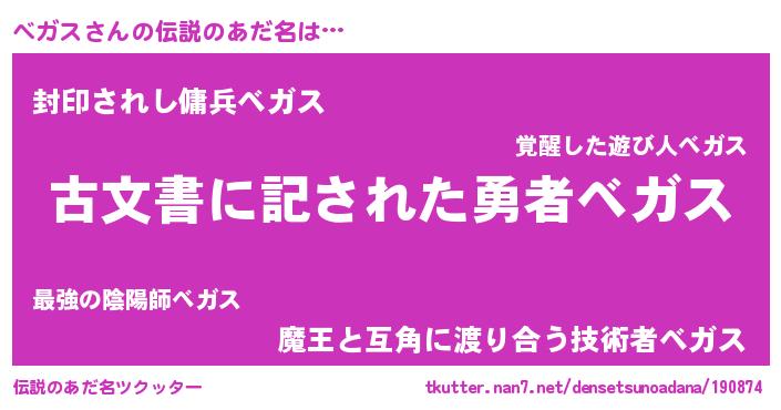 | ヘコむあだ名 | 『ベガス(遠い目)』『ベガにゅー』 |