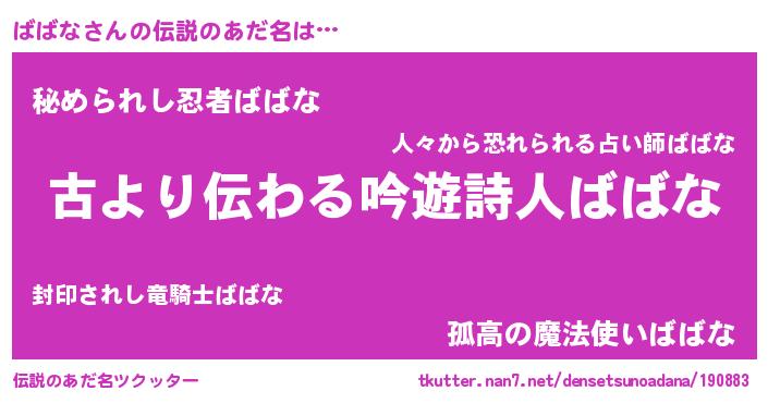 | 意味不明あだ名 | 『永久保存ばばな』『ばばなフォーエバー』 |
