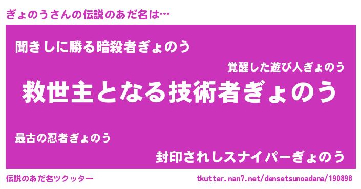 ヒーロー風カッコイイあだ名 | 『天空の使者ぎょのう』『ネオギョノウ』 |