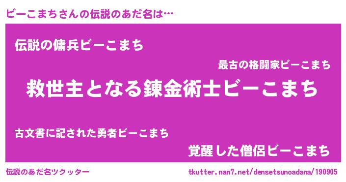 | ヒーロー風カッコイイあだ名 | 『天空の使者ビーこまち』『炎刃騎士ビー』 |