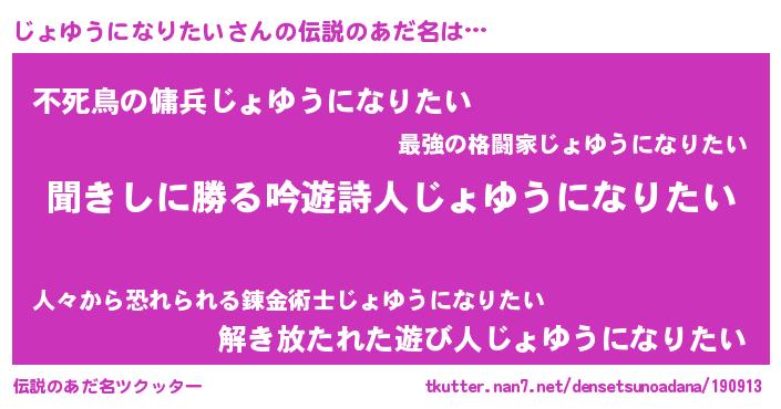 | 男性向けラノベタイトル風あだ名 | 『じょゆうになりたいという概念が存在しない退屈な世界 』 |