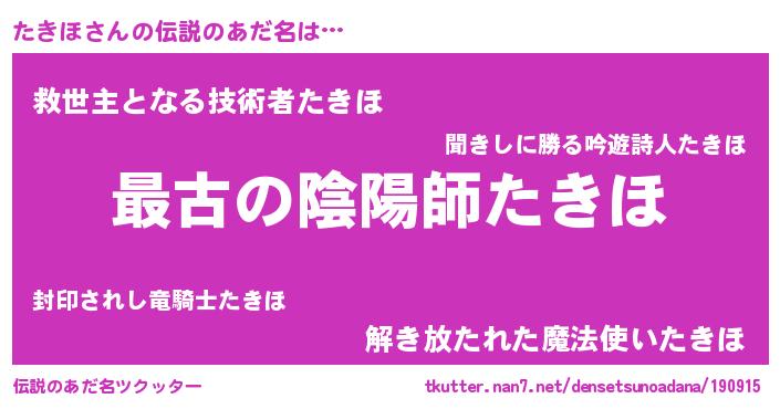 | ファンタジー風あだ名 | 『エターナルタキホー』『クインタット』 |