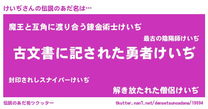 | ヘコむあだ名 | 『けいぢ(苦笑)』『けいっぺ』 |