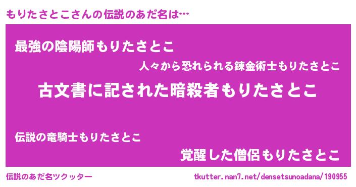 | 意味不明あだ名 | 『永久保存もりたさとこ』 |