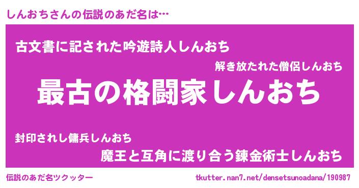 | 男性向けラノベタイトル風あだ名 | 『転生したらしんおちだった件』 |
