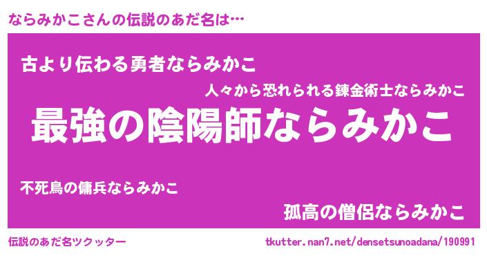 | 意味不明あだ名 | 『自称ならみかこ』『永久保存ならみかこ』 |