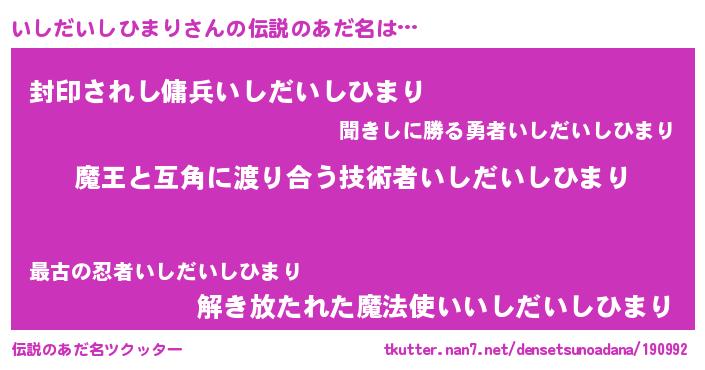 | ヒーロー風カッコイイあだ名 | 『慈愛の使者いしだいしひまり』 |