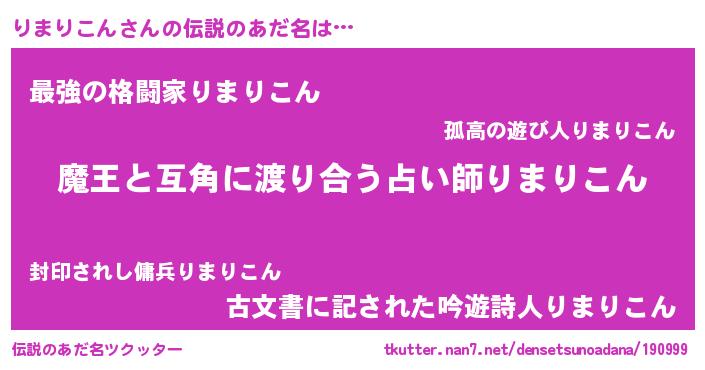 | 意味不明あだ名 | 『自称りまりこん』『永久保存りまりこん』 |