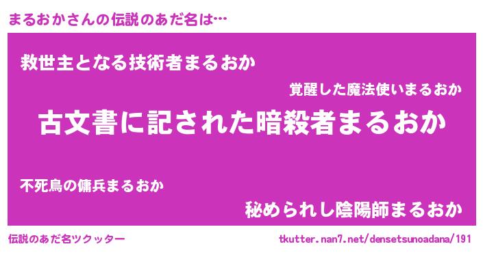 | ヒーロー風カッコイイあだ名 | 『ネオマルオカ』『仮面マルダー』 |