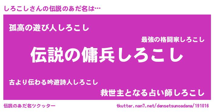 | ヒーロー風カッコイイあだ名 | 『スーパーシロコシ』『暗黒騎士シロ』 |