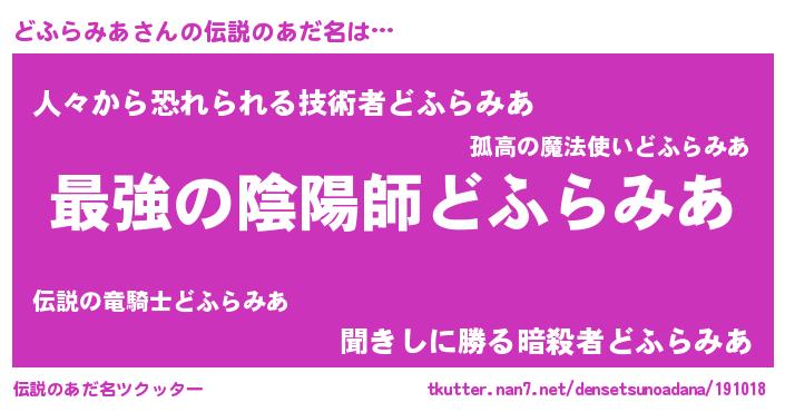 | 意味不明あだ名 | 『どふらみあフォーエバー』 |