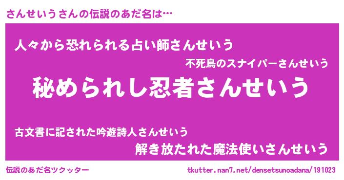 | ヒーロー風カッコイイあだ名 | 『ウルトラ戦士サンセイウ』 |