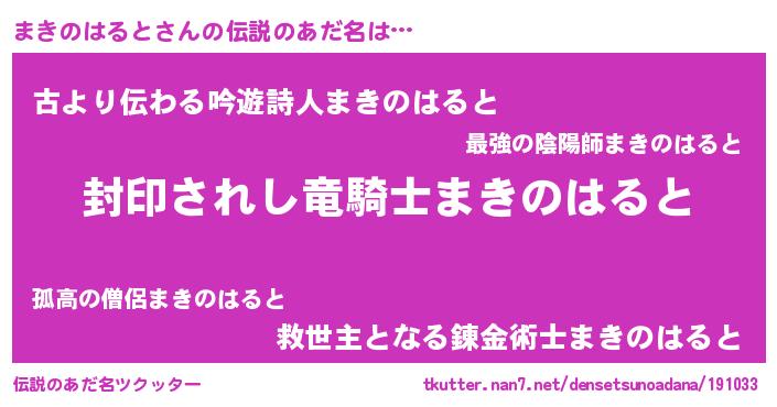 | 胡散臭い通販商品みたいなあだ名 | 『あなたにだけ特別に提供する100年もののヴィンテージワイン…その名も「まきのはると」』 |