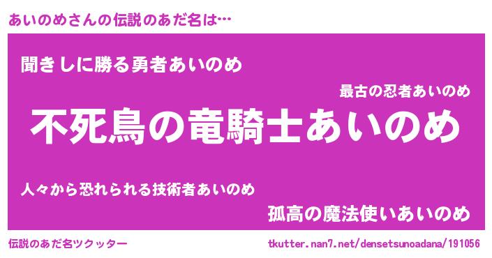 | ヘコむあだ名 | 『あいにー』『あいのめ(震え声)』 |