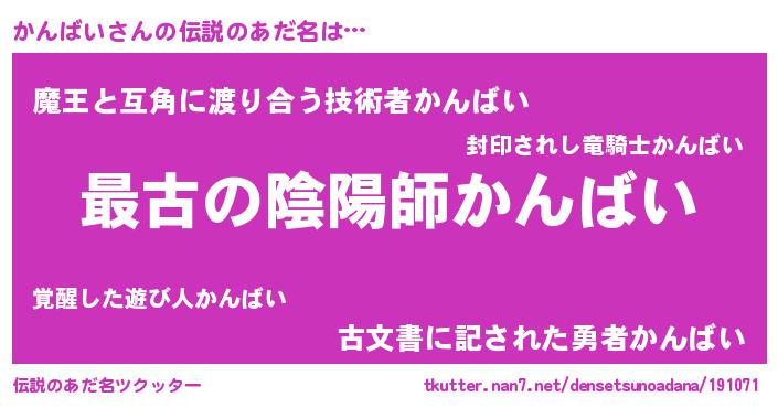 | 意味不明あだ名 | 『自称かんばい』『かんばいフォーエバー』 |