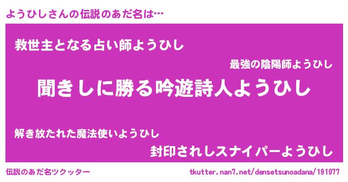 | ヘコむあだ名 | 『ようひし(笑)』『ようっふぃ~』 |