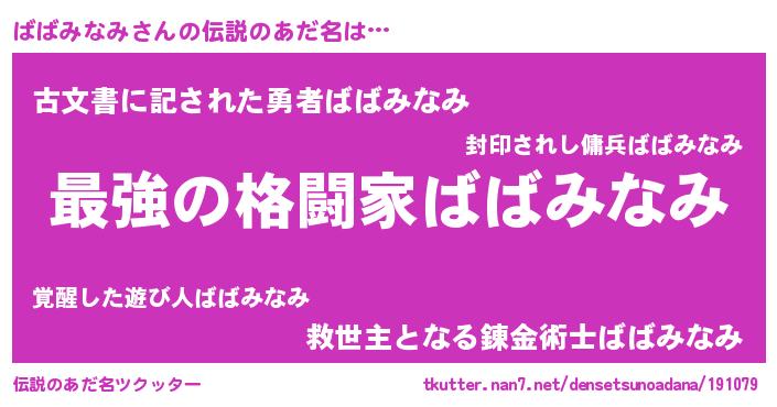 | ファンタジー風あだ名 | 『エターナルババミナミー』 |