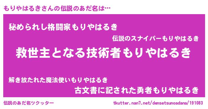 | ヒーロー風カッコイイあだ名 | 『慈愛の使者もりやはるき』 |