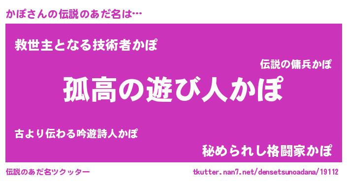 | 男性向けラノベタイトル風あだ名 | 『カポスレイヤー』『魔弾の王とかぽ』 |