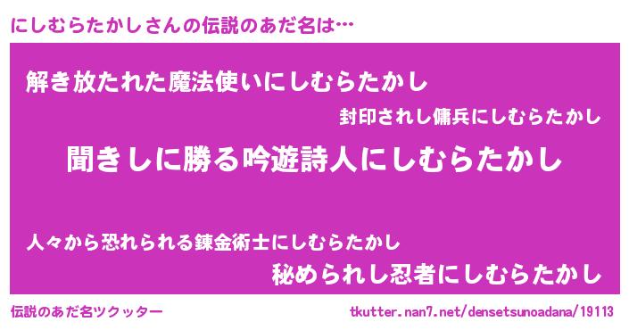 | 意味不明あだ名 | 『永久保存にしむらたかし』 |