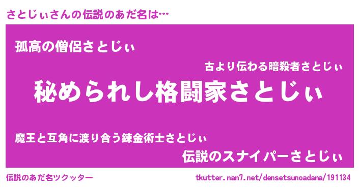 | ヒーロー風カッコイイあだ名 | 『ウルトラさとじぃマン』『暗黒騎士サト』 |