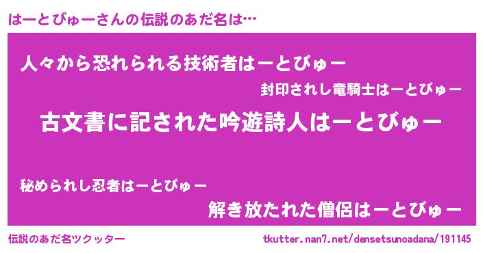 | 意味不明あだ名 | 『永久保存はーとびゅー』 |