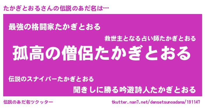 | ポケモン風あだ名 | 『ヒタカギトオル』『タカギダネ』 |