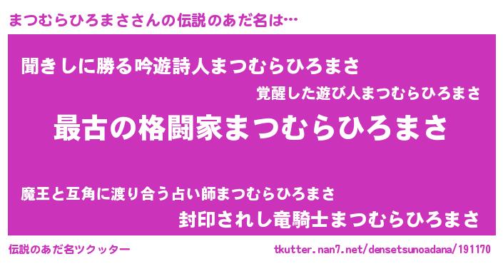 | 意味不明あだ名 | 『住所不定無職まつむらひろまさ(7歳)』 |