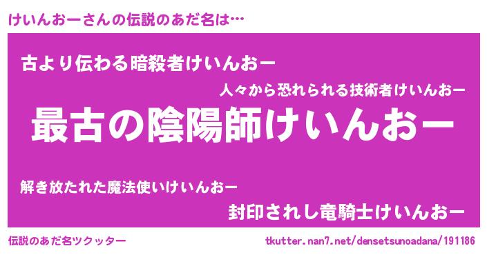 | ヒーロー風カッコイイあだ名 | 『仮面ケイダー』『ネオケインオー』 |