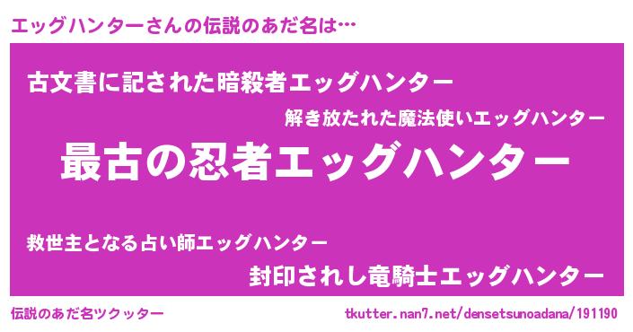 | ファンタジー風あだ名 | 『エターナルエッグハンターー』 |