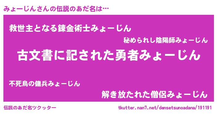 | 意味不明あだ名 | 『永久保存みょーじん』 |