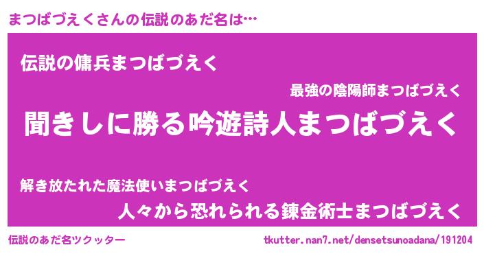 | 欧米人風あだ名 | 『トリンドルまつばづえく』 |