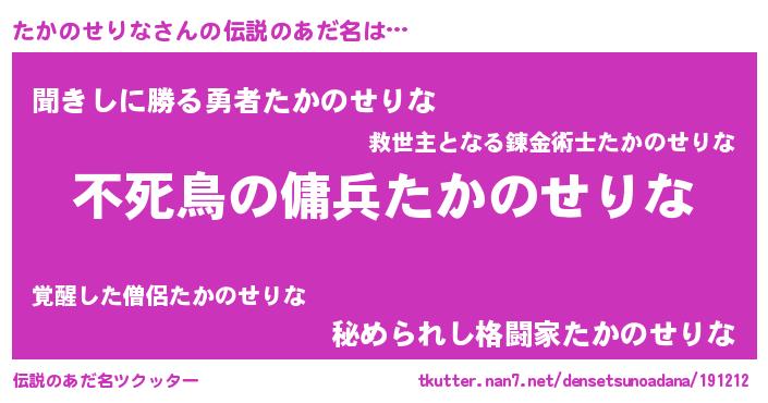 | 意味不明あだ名 | 『ペロリンたかのせりな』 |