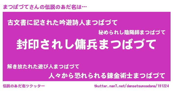 | 男性向けラノベタイトル風あだ名 | 『この素晴らしい世界にまつばづてを!』 |