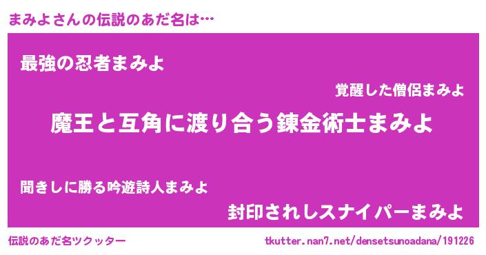 | 意味不明あだ名 | 『眠気覚ましガムまみよ味』『自称まみよ』 |