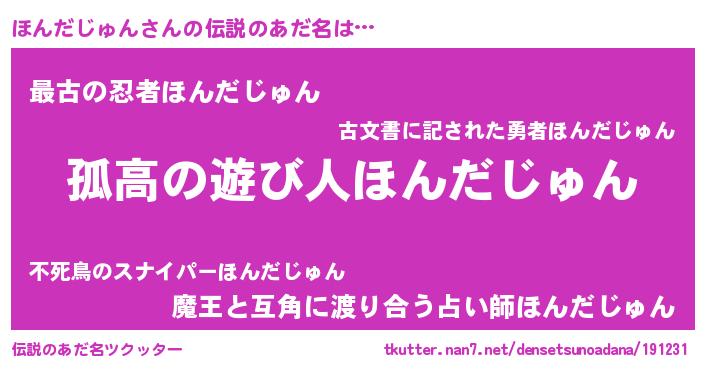 | 意味不明あだ名 | 『住所不定無職ほんだじゅん(86歳)』 |