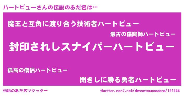 | ヒーロー風カッコイイあだ名 | 『スーパーハートビュー』『仮面ハーダー』 |