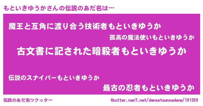 | ヒーロー風カッコイイあだ名 | 『仮面モトダー』『ネオモトイキユウカ』 |