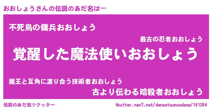 | 意味不明あだ名 | 『とにかく怪しいおおしょう』 |