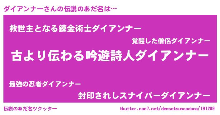 | 意味不明あだ名 | 『永久保存ダイアンナー』 |