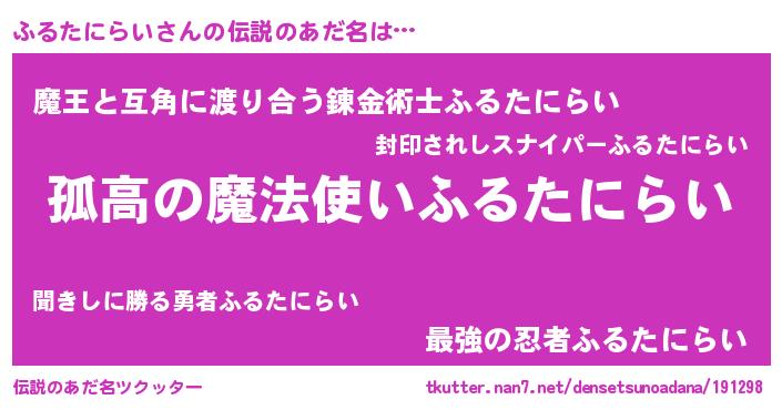 | 胡散臭い通販商品みたいなあだ名 | 『信頼と実績のサプリメント…その名も「ふるたにらい」』 |